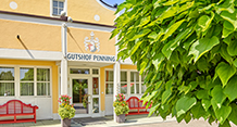 Der Gutshof, der gleich von zwei 18-Loch-Meisterschaftsplätzen eingerahmt wird. Driving Range, Putting-Green und Chipping-Area direkt angrenzend, dazu der beheizte Außenpool mit Liegewiese und zwei herrliche Sonnendachterrassen – da lässt es sich urlauben!